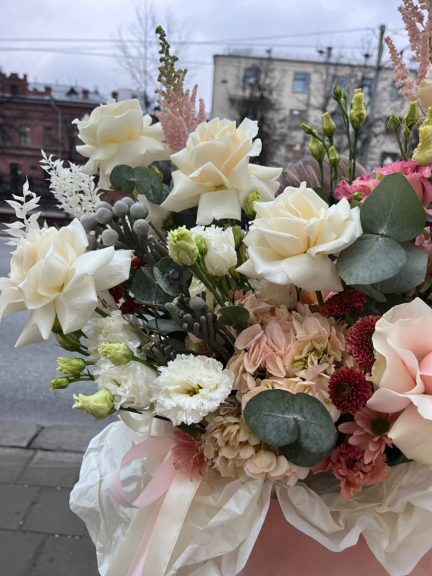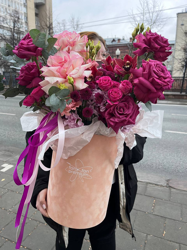 Собираем изысканные моно- и микс-композиции в корзинах, крафте, ящиках и шляпных коробках.