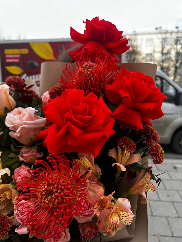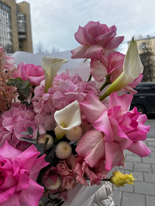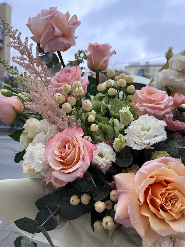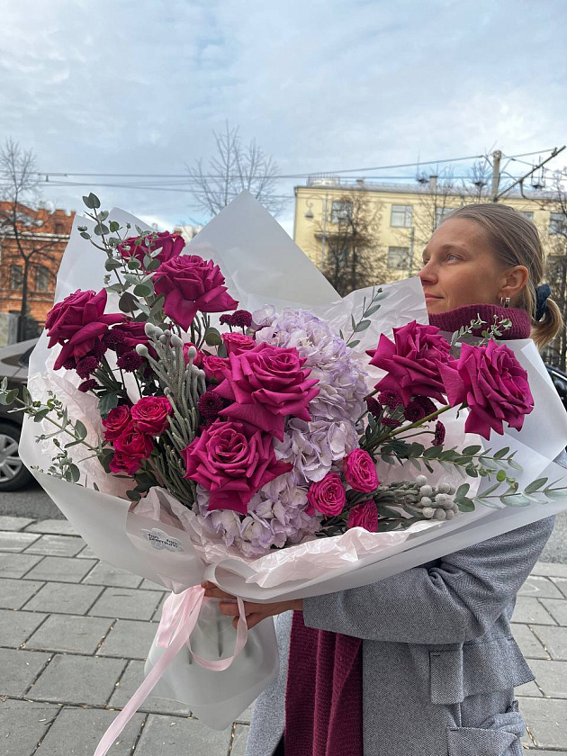 На стоимость композиции влияет упаковка, сорта, количество цветов, присутствие зелени или декоративных элементов. Цены располагаются под каждым товаром на сайте.