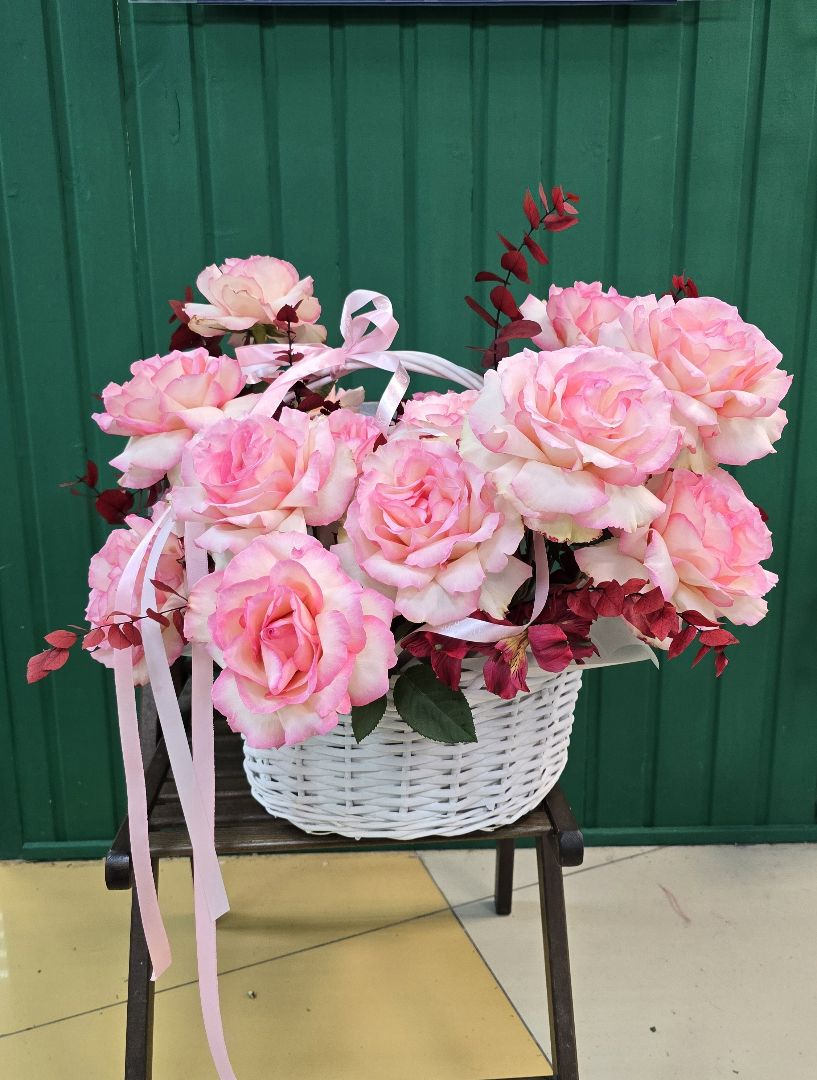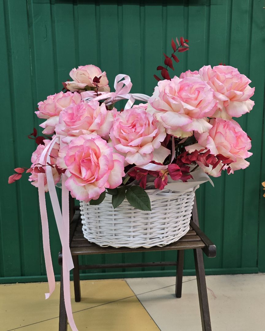 Данная цветочная композиция под запрос. Это значит что возможно у нас отсутствует какой-либо цветок в составе букета. Но мы готовы собрать похожую композицию, не чуть не менее красивую чем эта. Вы можете оставить заявку. И мы свяжемся с вами и предложим возможные варианты.