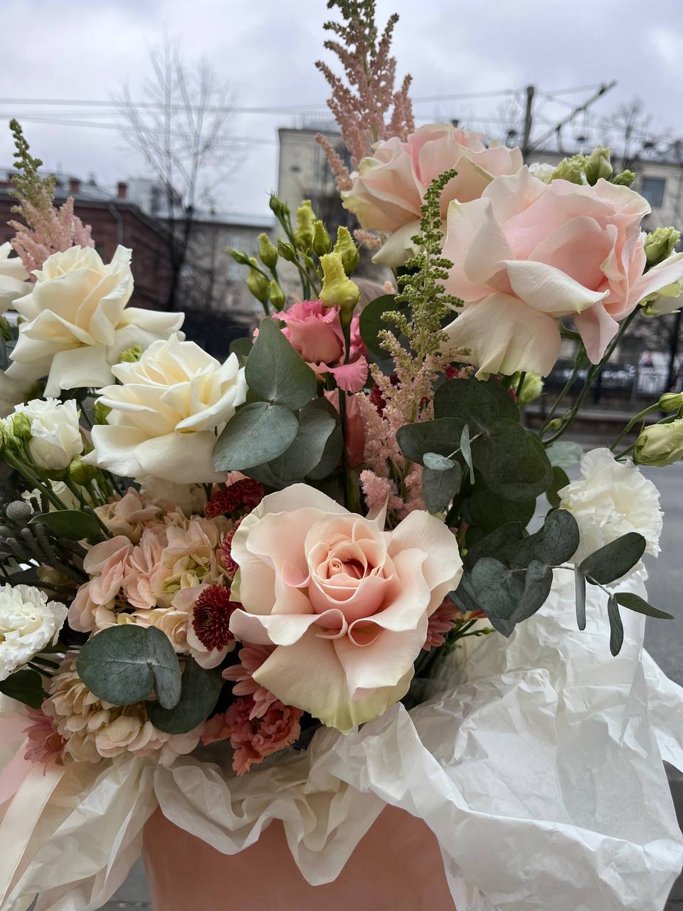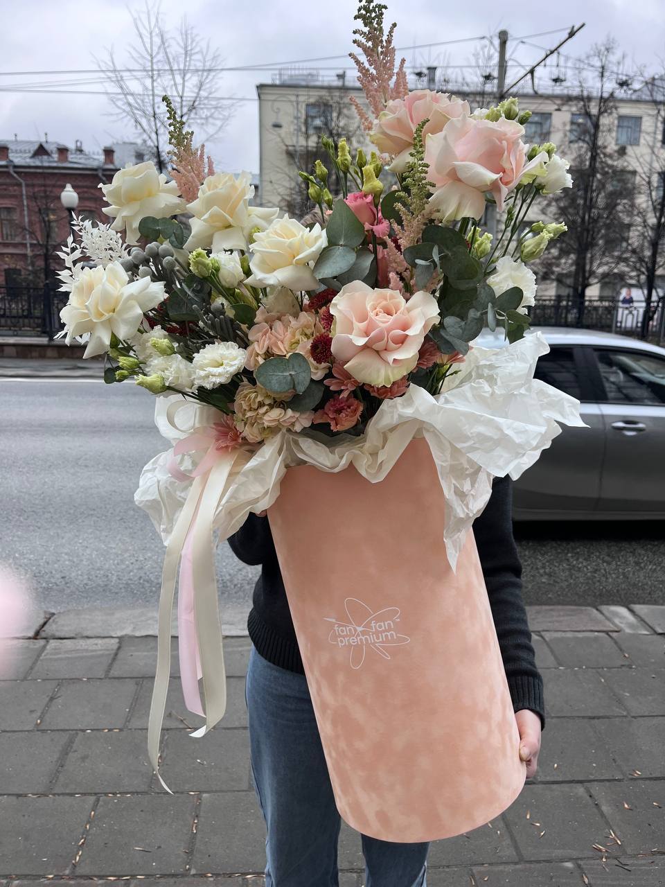 Данная цветочная композиция под запрос. Это значит что возможно у нас отсутствует какой-либо цветок в составе букета. Но мы готовы собрать похожую композицию, не чуть не менее красивую чем эта. Вы можете оставить заявку. И мы свяжемся с вами и предложим возможные варианты.