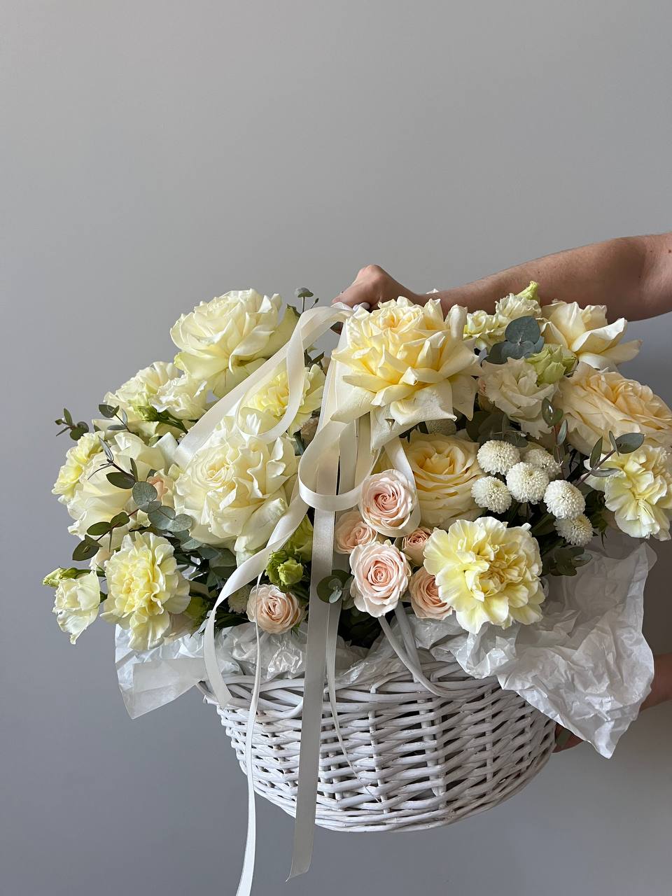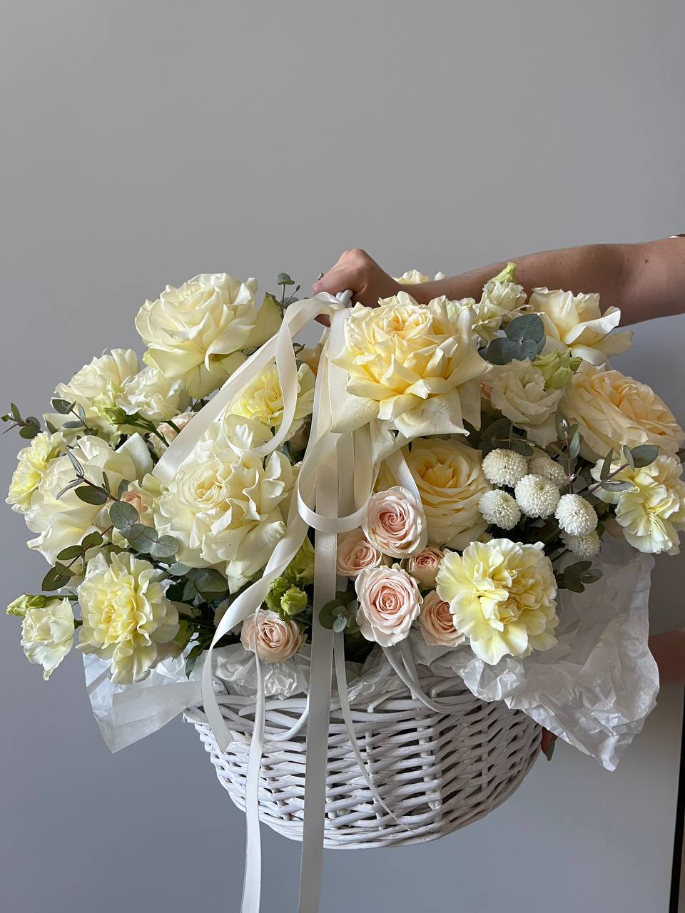 Большая корзина «Свежесть чувств» — это гимн природной красоте и искренним эмоциям. Композиция словно передаёт первое дыхание весны: лёгкие, воздушные оттенки и изящные формы создают ощущение пробуждения и радостного ожидания.