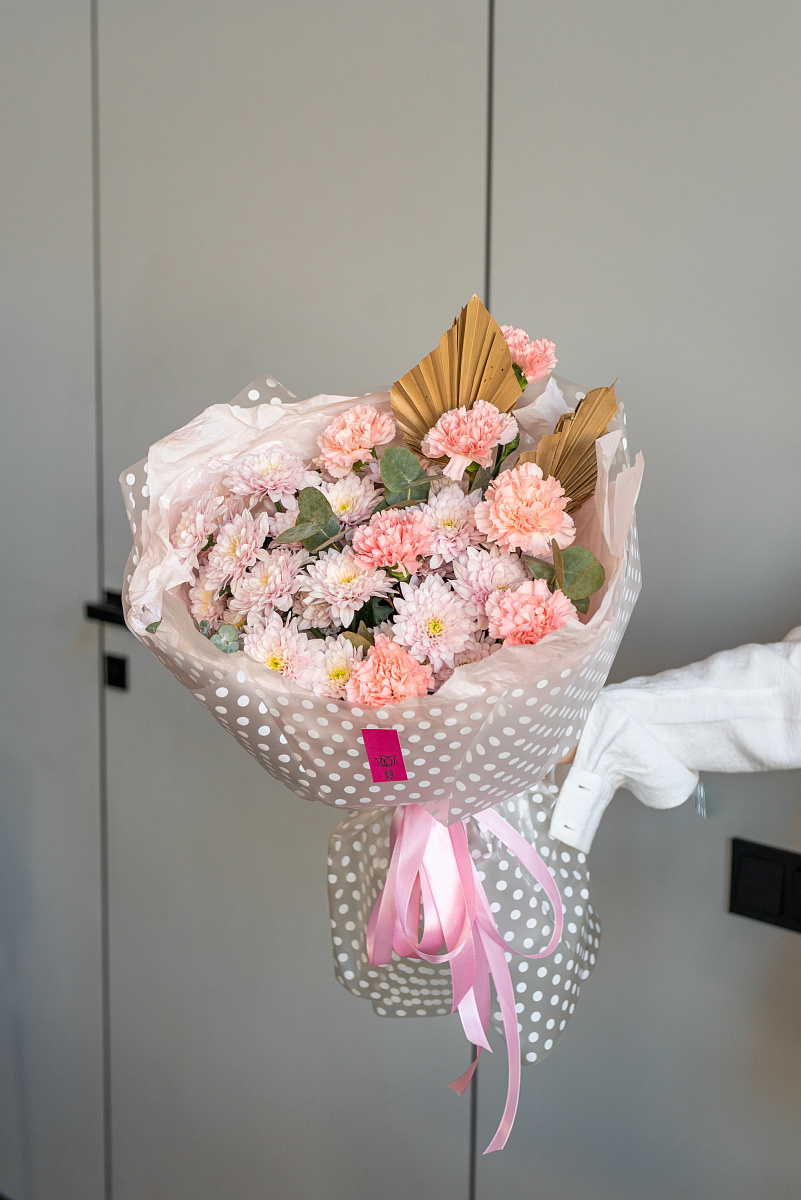 Нежный розовый букет — это тёплое признание в чувствах, воплощённое в цветах. Название «От всего сердца» точно передаёт суть композиции: это искренний жест, в котором каждая деталь говорит о внимании и заботе.