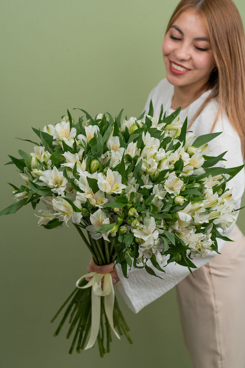 Букет из альстермерий - это нежное и изысканное сочетание цветов, которое подарит радость и восхищение своему получателю.