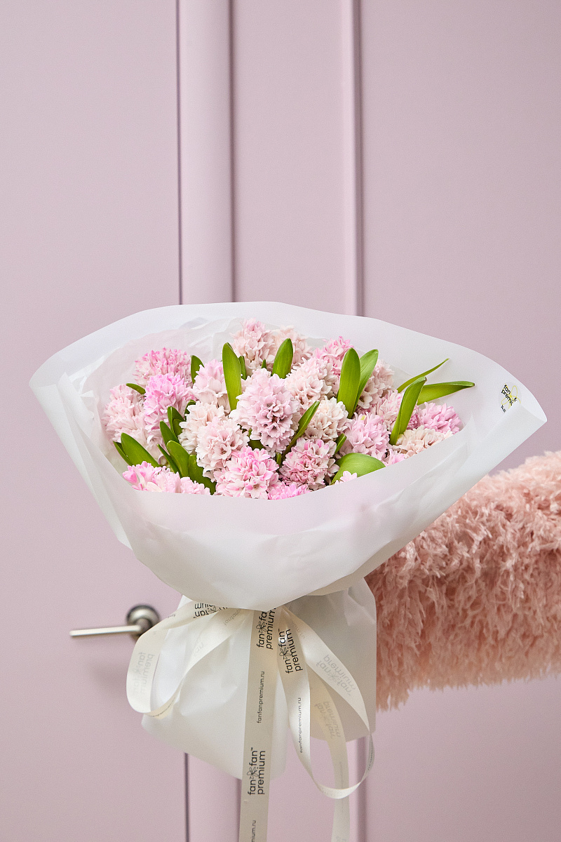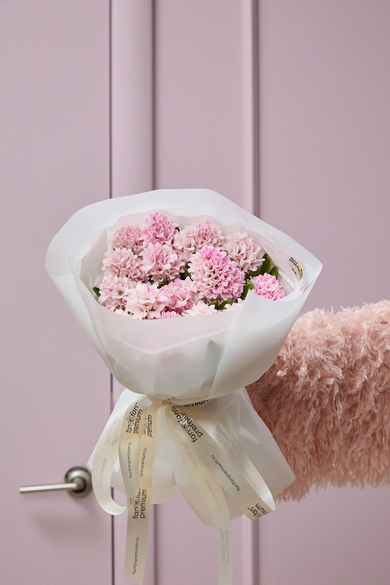 Изысканный букет из гиацинтов — это воплощение весеннего пробуждения и утончённой красоты. Пышные соцветия‑кисти и насыщенный аромат создают особое настроение, наполняя пространство свежестью и теплом первых солнечных дней.Букет представлен в 2 размерах, XS- 15 шт и S - 25 шт.