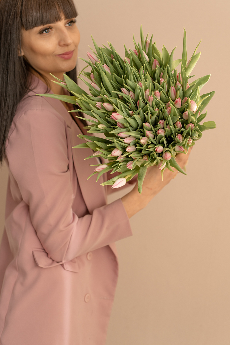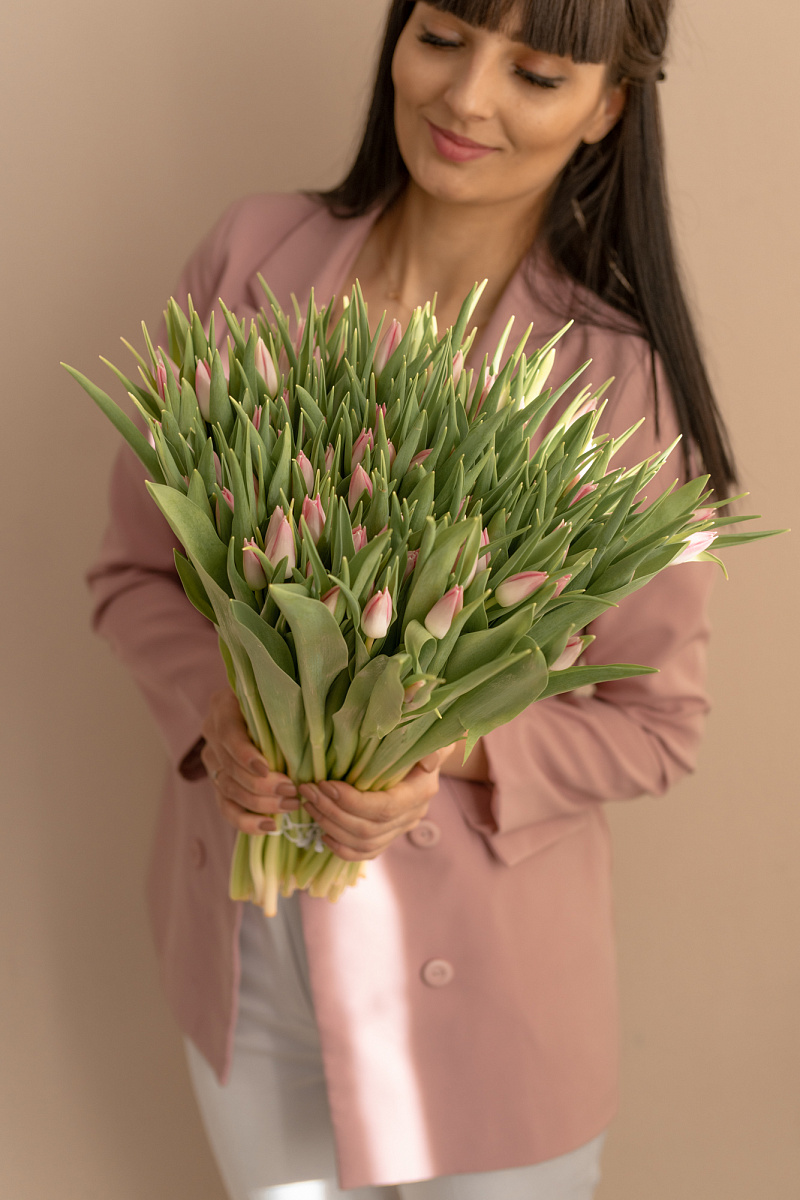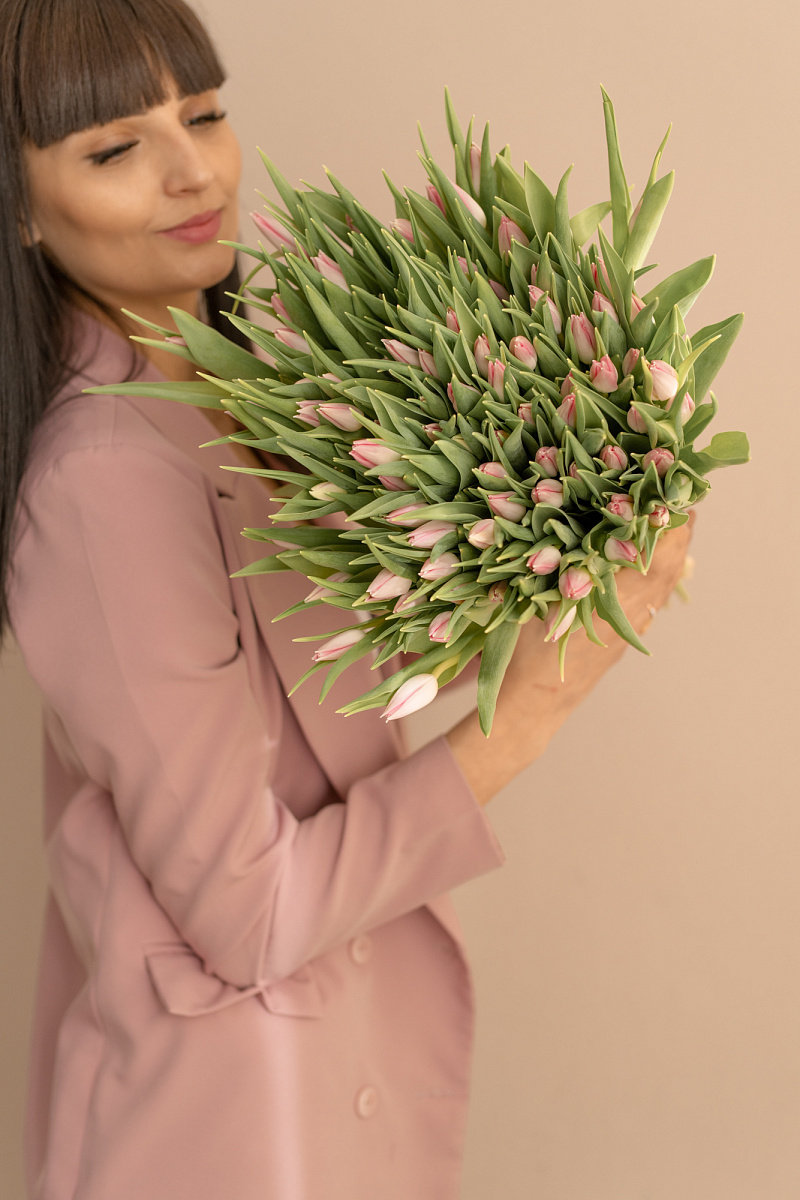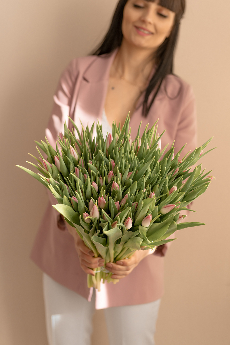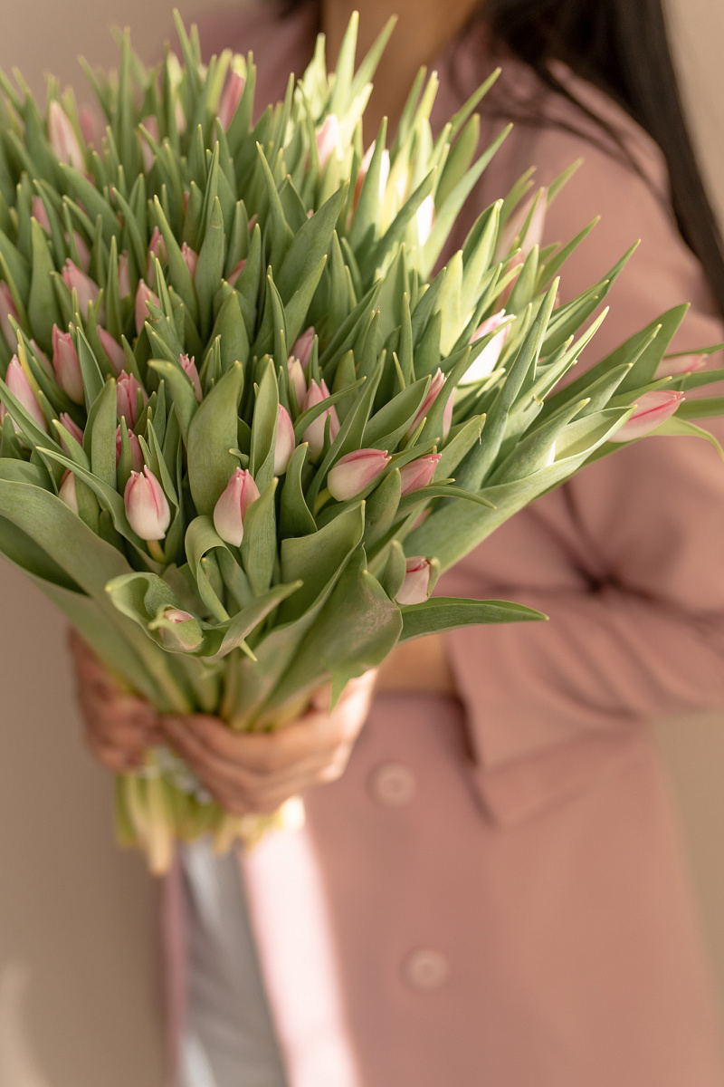 Букет тюльпанов – это символ весны и новой жизни .Розовые тюльпаны , словно воплощение самой нежности и грации. Каждый цветок создает гармоничное целое, излучая свою уникальную красоту.