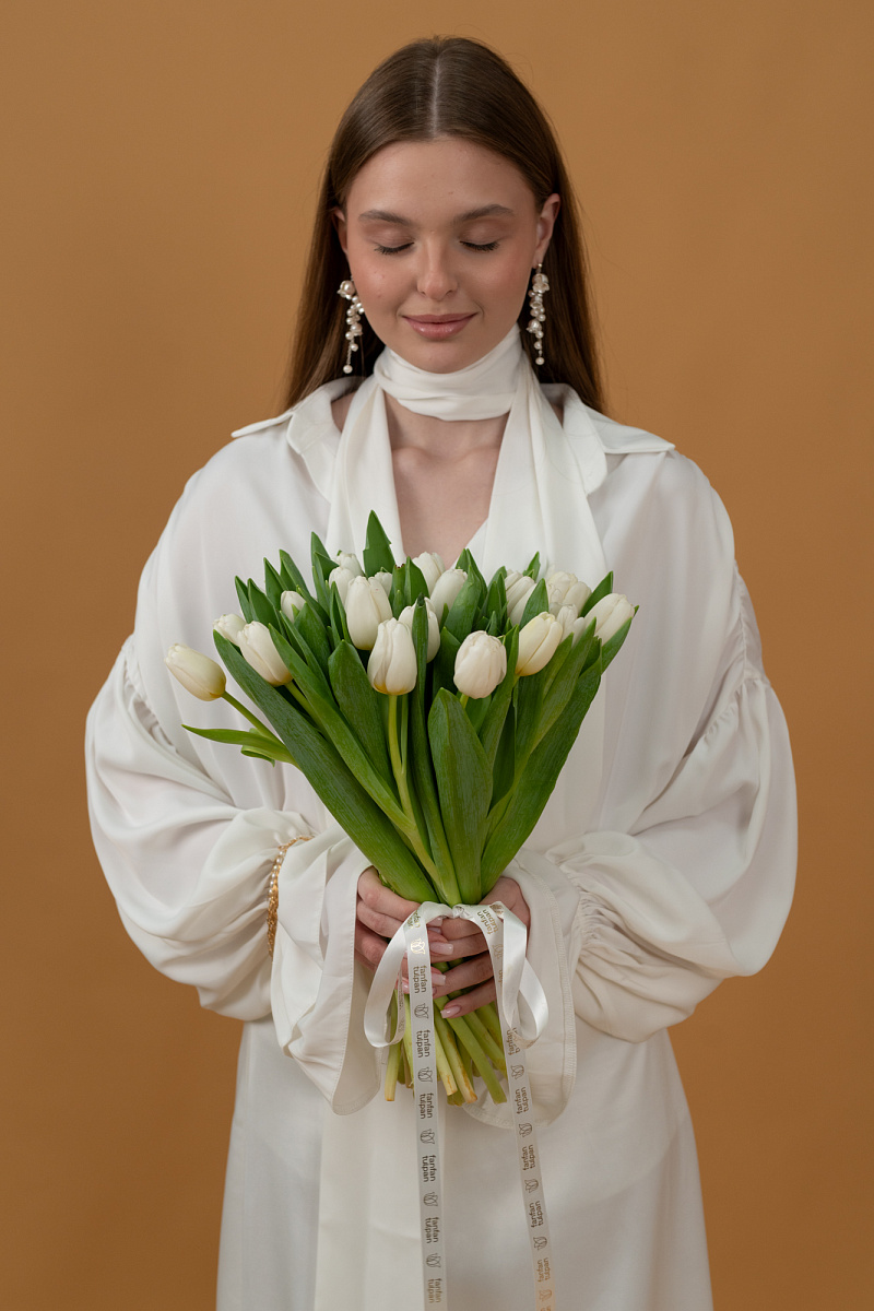 Тюльпаны сорта White Prince — это настоящая жемчужина весеннего цветника. Этот сорт отличается элегантными белыми цветами с нежным кремовым оттенком, которые придают букету особую изысканность.