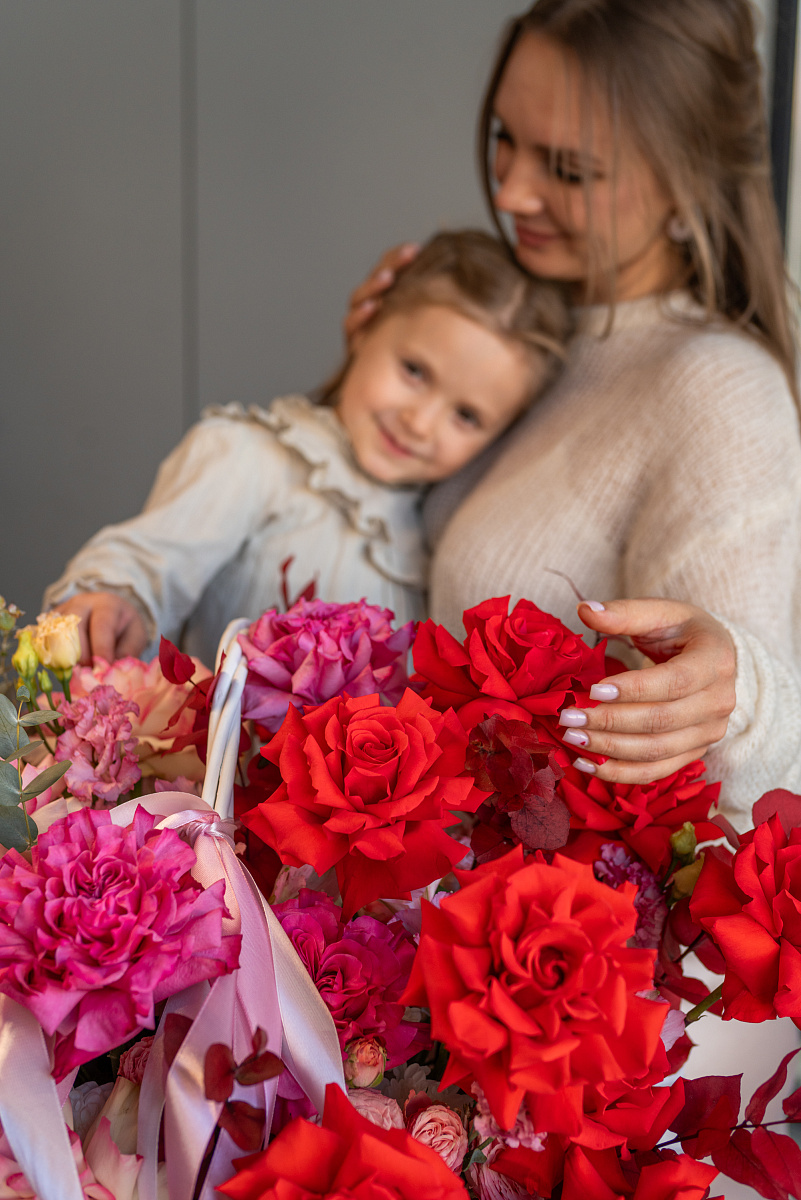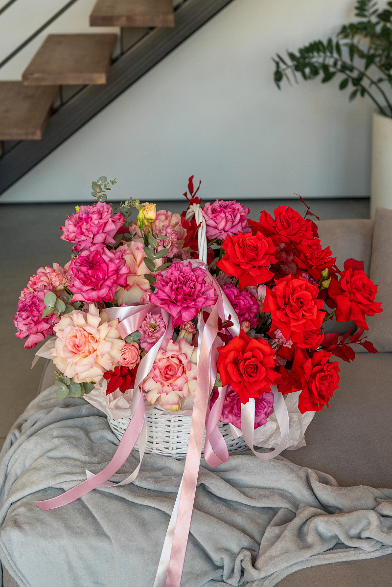 Изящная большая корзина, наполненная изысканным сочетанием цветов, — это воплощение баланса и эстетического совершенства. «Гармония оттенков» дарит ощущение умиротворения и радости, соединяя в себе мягкость розовых тонов и живость насыщенных акцентов.