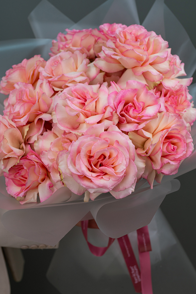 Букет транспортируется с Аквабоксе и Коробке-Трапеции, либо в Аквабоксе и Фирменном пакете.
