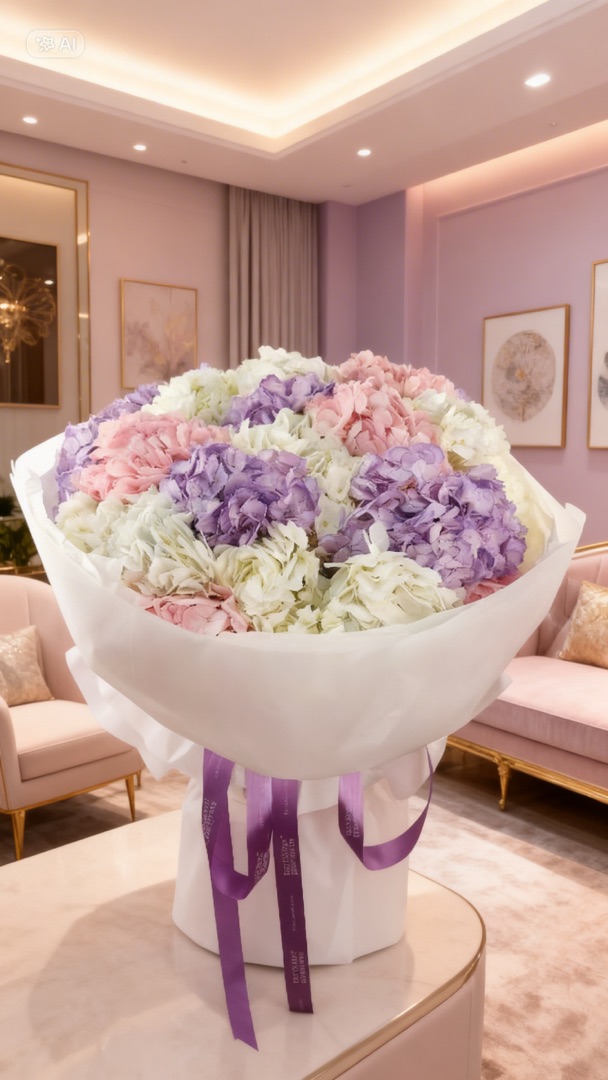 Букет-микс из гортензий — словно мгновение лета, застывшее в цветах. Нежные оттенки розового, голубого и белого переплетаются в гармоничной композиции, напоминая о закате над морем, утренней росе и первых весенних днях.