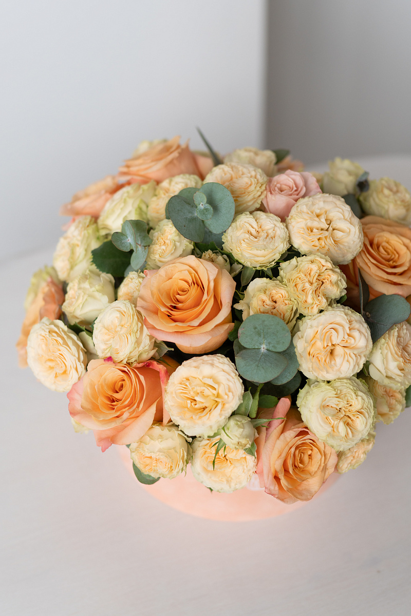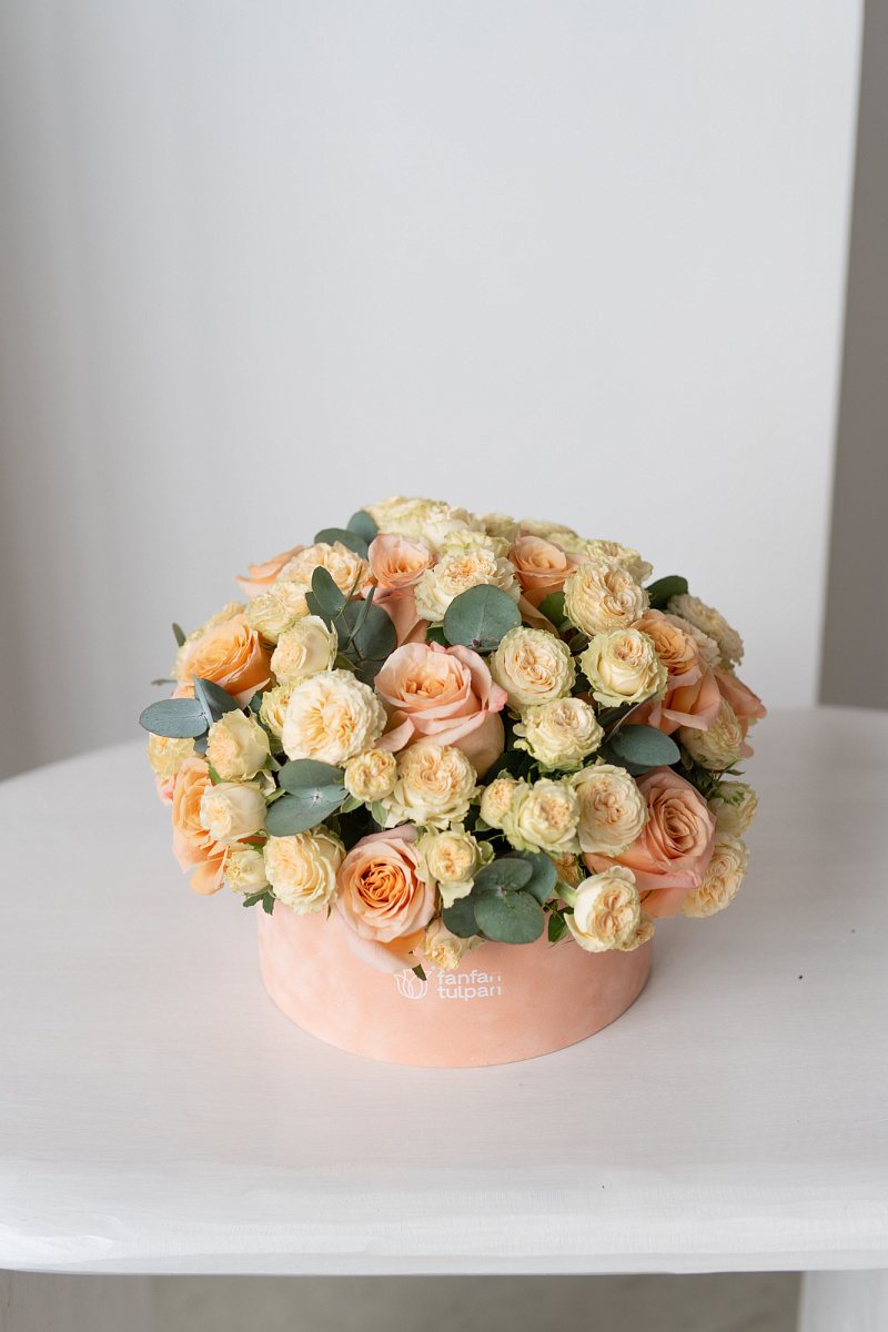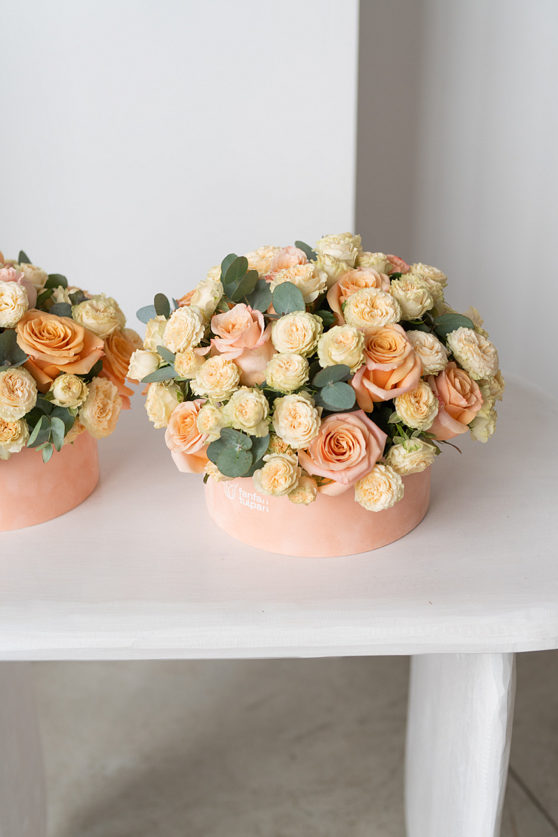 Этот букет из персиковых роз и персиковых кустовых роз станет истинным изумлением для каждого, кто окажется рядом с ним. Он вызывает неописуемые эмоции, погружая нас в волшебный мир роскоши и элегантности. Каждый цветок словно рассказывает свою уникальную историю, раскрывая перед нами тайны природы и ее бесконечных вдохновляющих возможностей.