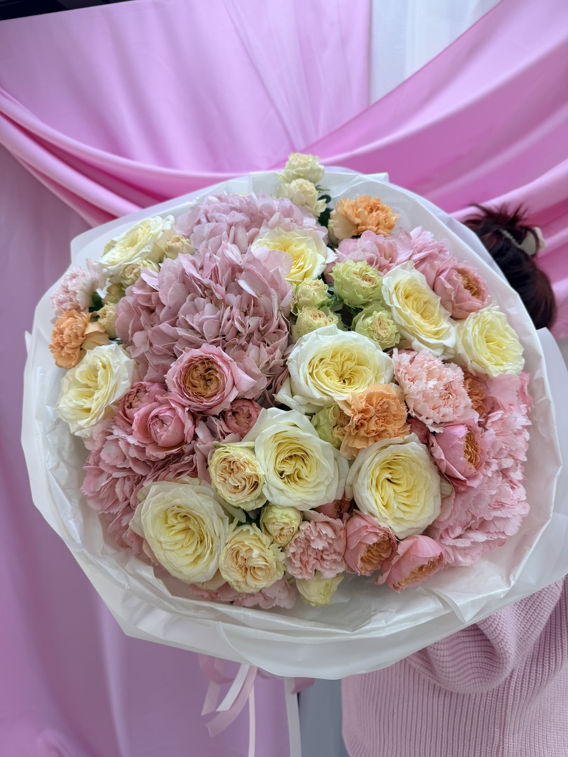 Погрузитесь в океан радости с нашим дофаминовым букетом! Нежные гортензии, словно облака пастельных оттенков, создают ощущение лёгкости и безмятежности. Их пышные соцветия напоминают о тёплых летних днях, прогулках по цветущим садам и мгновениях абсолютного счастья.