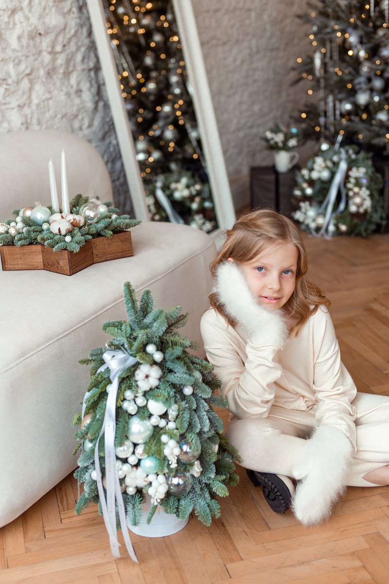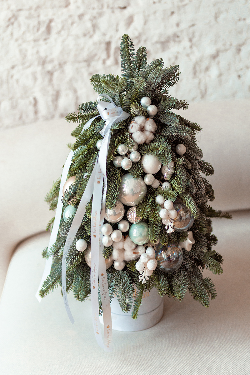 Новогодние композиции из нобилиса - это настоящее волшебство, которое привносит праздничное настроение в каждый дом! Обращаем внимание,что декор шарами располагается на лицевой стороне елочки.