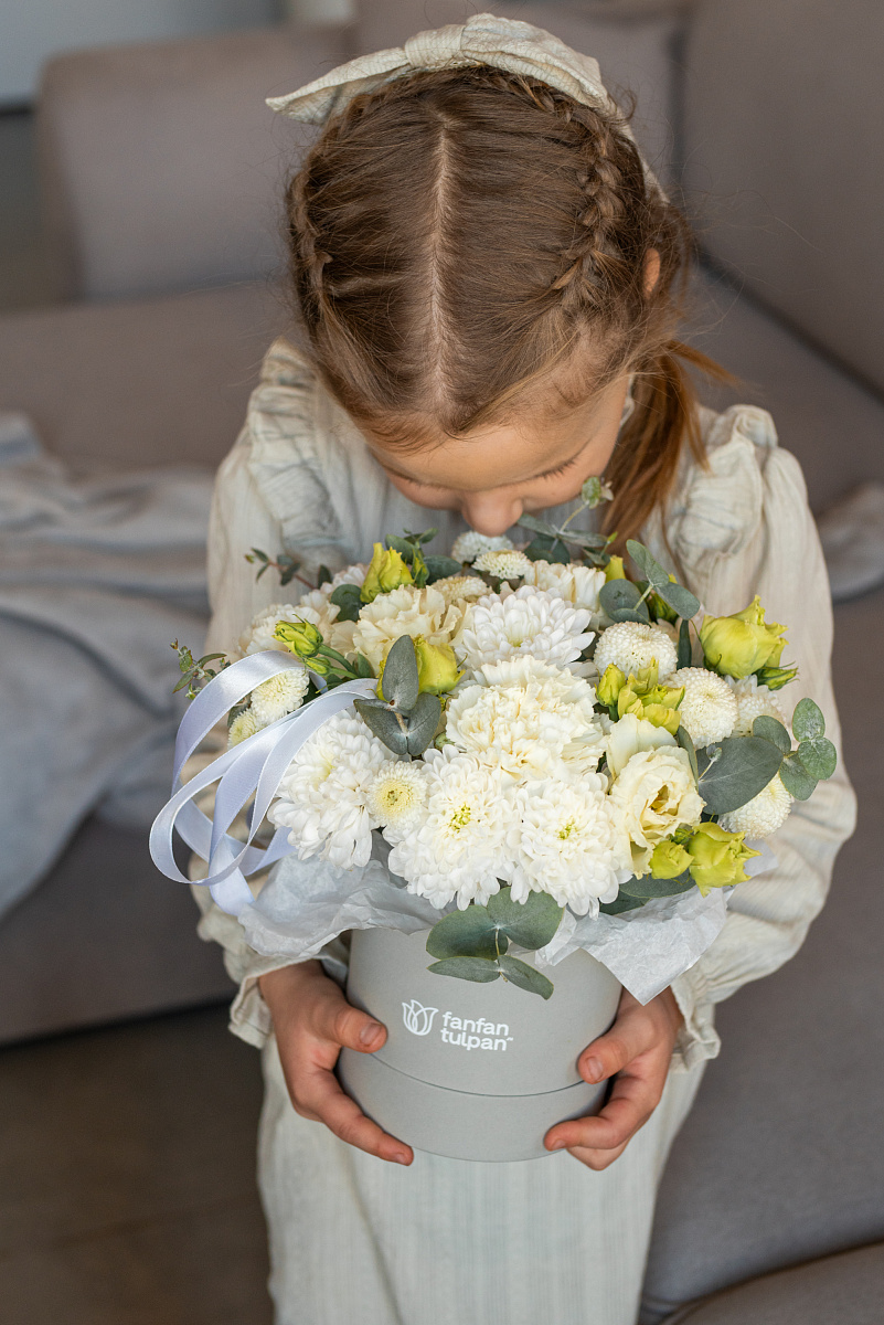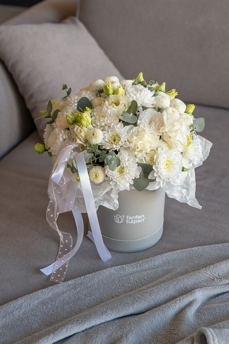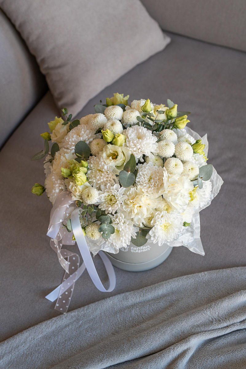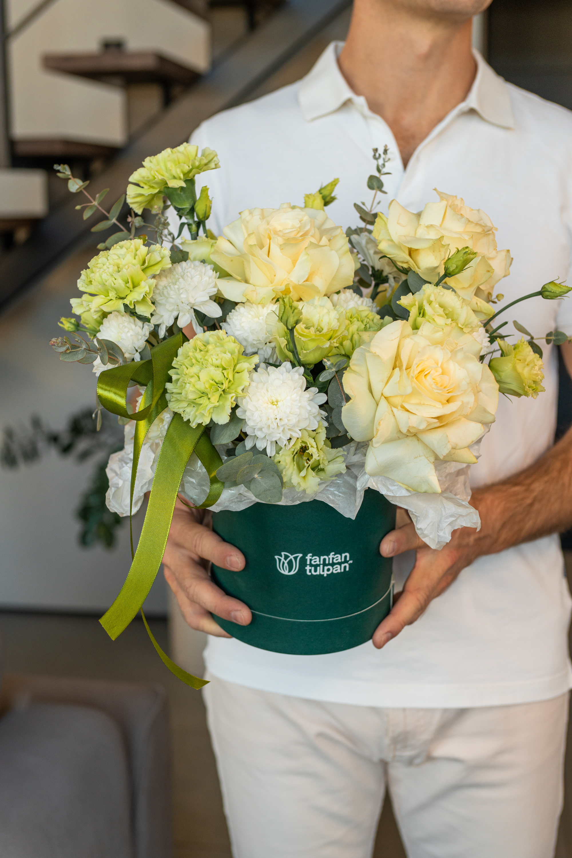 Элегантная композиция в стильной коробке — это современный флористический шедевр, где гармония форм, оттенков и текстур создаёт неповторимое впечатление.