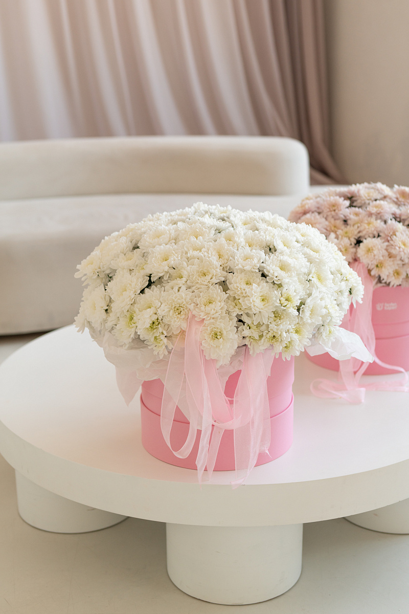 «Большая история» — это не просто букет в коробке, а целое повествование, выраженное языком цветов. Пышная композиция из хризантем рассказывает о глубине чувств, стойкости намерений и красоте, которая длится долго — как хорошая история, не теряющая очарования со временем.