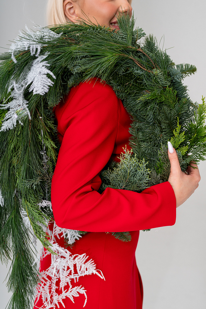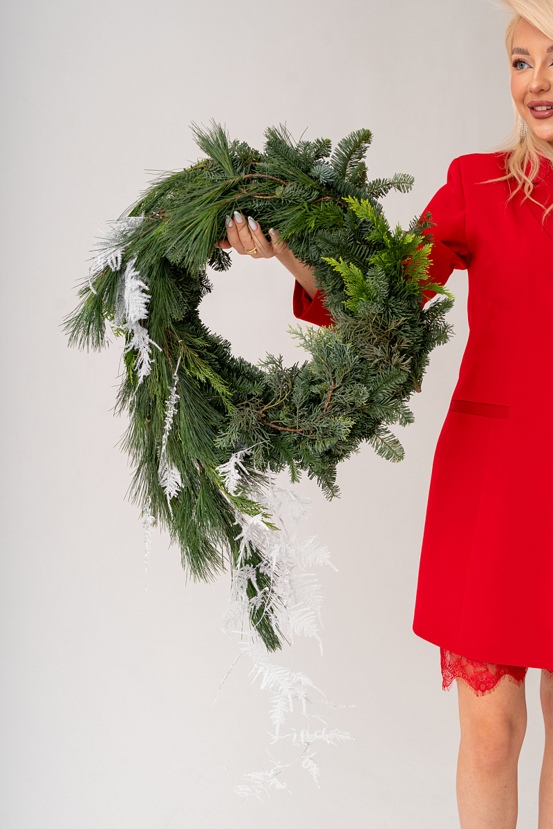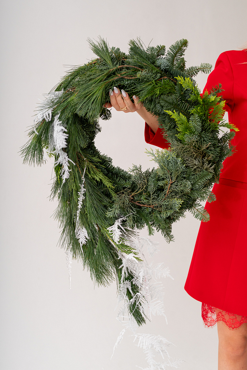 Новогодний венок из нобилиса и туи — это стильное и ароматное украшение, которое создаёт атмосферу праздника. Такие композиции сочетают в себе благородную хвою нобилиса и плотную структуру туи, дополненные декоративными элементами.